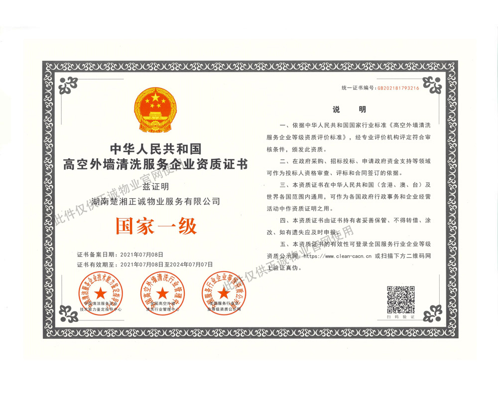 高空外墻清洗服務企業資質證書