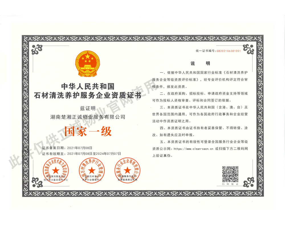 石材清洗養護服務企業資質證書